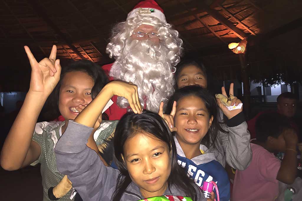 Santa finally arrived after a great evening with a feast of food, looking resplendent in his red suit and carrying a big bag of gifts. As each kid stepped up to receive their gifts, their smiles grinning from ear to ear, they opened their gifts with glee, sharing it with each other the fun and festivities of the night.
