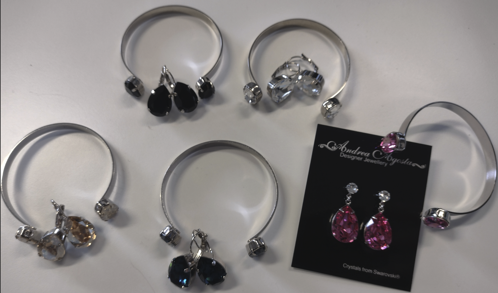Set of 1 cuff and 1 pair of earrings. (pink, blue, black, tan or clear) (earrings leverback or stud) quantity